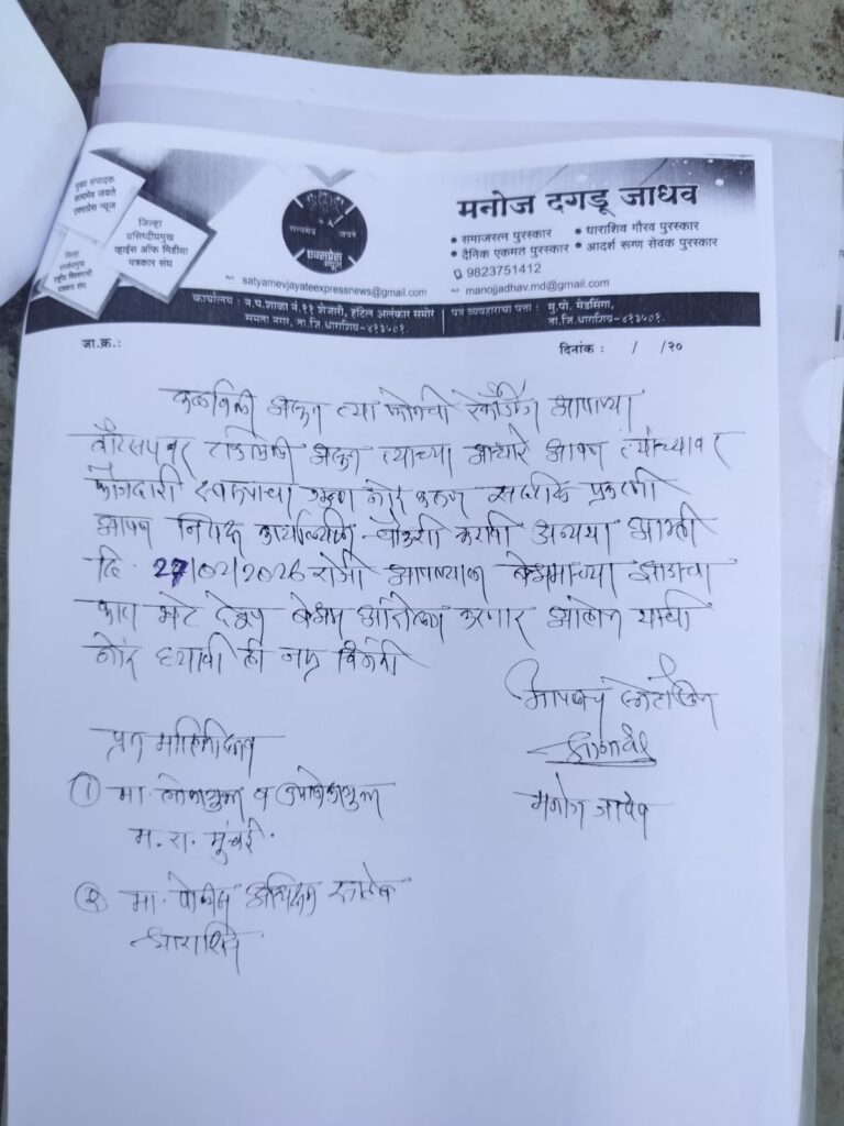 धाराशिव – जिल्ह्यात खतसाठा उपलब्ध असल्याचे अधिकृत पत्रकात नमूद असतानाही प्रत्यक्षात शेतकऱ्यांना खत मिळत नसल्याच्या आरोपावरून शेतकरी पुत्र मनोज जाधव यांनी जिल्हा कृषी विकास अधिकारी (जिल्हा परिषद) व जिल्हा कृषी अधीक्षक (सेंट्रल बिल्डिंग) यांच्या कार्यालयात अनोखे आंदोलन छेडले. दोन्ही अधिकाऱ्यांच्या रिकाम्या खुर्च्यांवर बेशरमाचा फाटा ठेवत त्यांनी प्रशासनाचा निषेध नोंदवला.